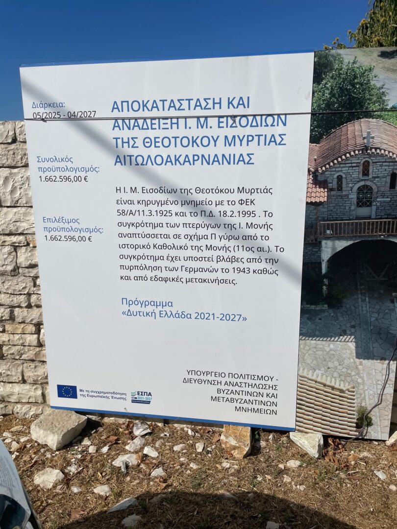 Έναρξη εργασιών στην «Ι.Μ. Εισοδίων της Θεοτόκου Μυρτιάς» ενταγμένο στο πρόγραμμα του Υπουργείου Πολιτισμού «Αναστήλωση Βυζαντινών & Μεταβυζαντινών Μνημείων».